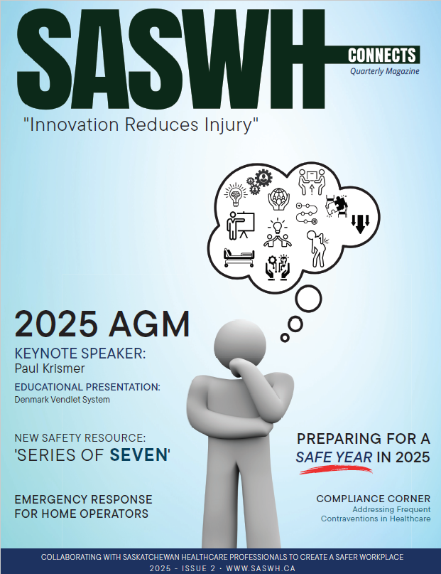 SASWH Connects is a magazine intended for G22 employers and frontline workers in Saskatchewan. These quarterly publications will focus on SASWH programs and services, occupational health and safety legislation, compliance requirements, best practices, upcoming health and safety events, statistics on safety in healthcare, and more.